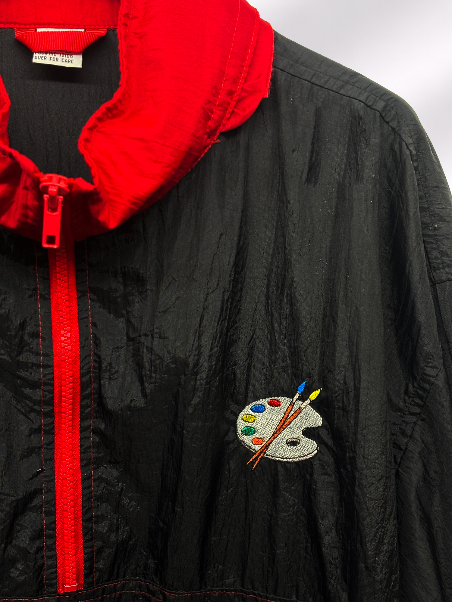 【一点物】O/W [OverWrite] ドローイング刺繍 ナイロンハーフジップジャケット (Black/Red)