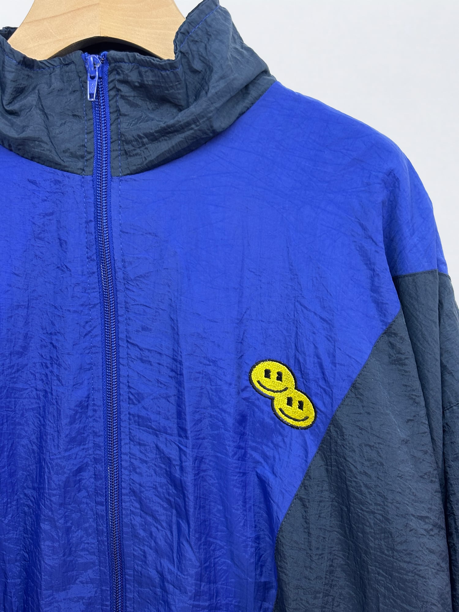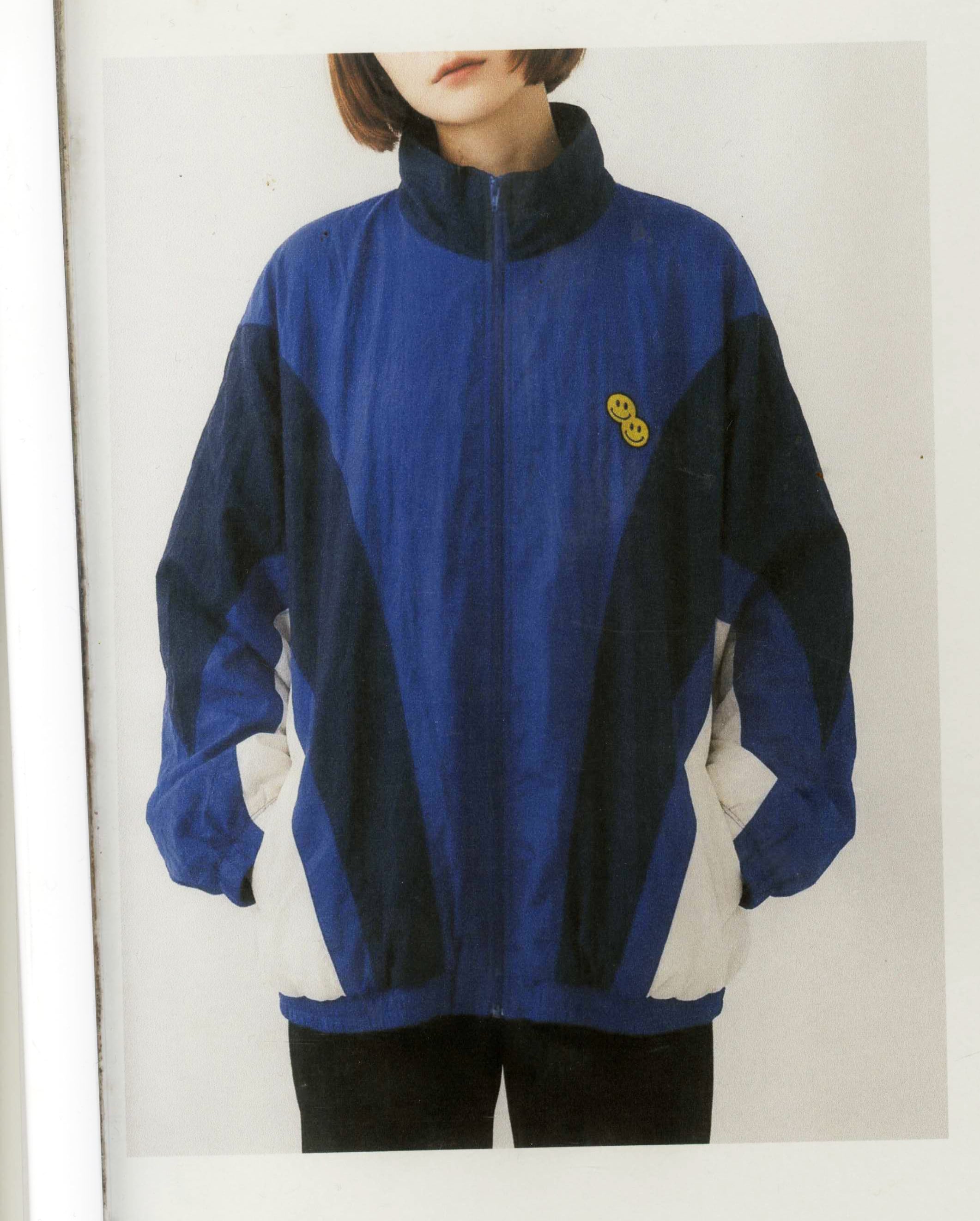 ベースとなるのは、ブルーを基調にネイビーとホワイトで切り替えられたヴィンテージナイロンフルジップブルゾン。